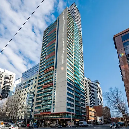 Apartamento está equipado com kitchenette que possui comodidades como microondas e refrigerador. A estação de ônibus A'Beckett Street/Queen Street está a 150 metros de distância.